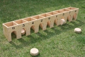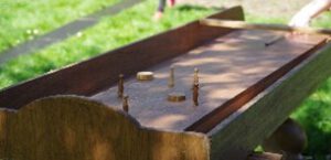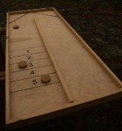 Volksspelen inbegrepen in dit pakket: glijtafel, stokjesspel en (kinder)sjoelbak.